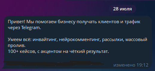 Мы анализируем ваш продукт или услугу и подбираем релевантные Telegram-чаты и собираем оттуда аудиторию. Исключаем неактивные, спамерские и пустые чаты — работаем только с живой аудиторией.